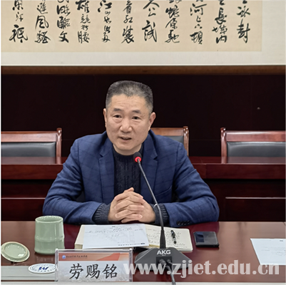 劳赐铭对蒋伟一行表示热烈欢迎。他简要介绍了学校的办学情况重点介绍了学校在国家、省双高计划”建设,校企合作比赛承办、国际化办学、职教联盟建设及行指委作用发挥等方面工作开展情况和思路。他指出东西部教育协作是推动区域协调发展建设共同富裕示范区的一个重要举措,希望双方之前相关合作的基础上,借助浙川东西部教育协作的大平台不断整合优势资源发挥协同效应拓宽合作空间,在高素质师资队伍建设高水平专业建设高技术技能人才培养等方面相互扶持、共同发展。