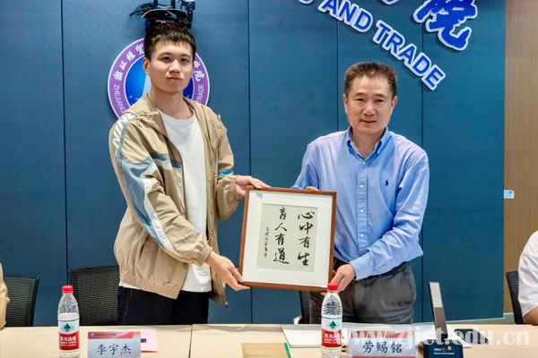 活动现场,学生代表向劳赐铭赠送了写有“心中有生,育人有道”的书法作品。劳赐铭则向与会学生代表赠送了《平语近人——习近平喜欢的典故》书籍。“我想与书记合个影”“我想与书记散步”……劳赐铭还在活动中答复并承诺了这些真诚朴素的“微心愿”,以更近的距离与学生面对面深入交流。