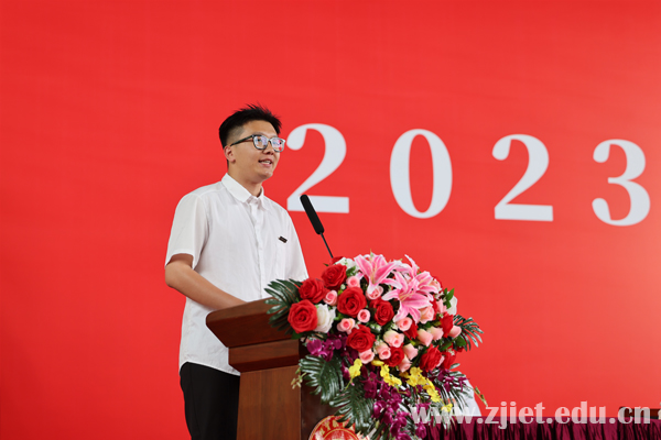 “感恩经贸让我的成长从‘量变’升华到质变’;今后定将牢记母校嘱托,廉洁从业,做一个廉洁、勤勉、诚信、实干之人。”来自信息技术学院软件技术专业、浙江省优秀毕业生获得者徐俊勇同学作为毕业生代表发言,一段话情真意切,表达了对母校的感恩之情和对未来的庄重承诺。