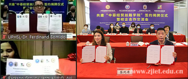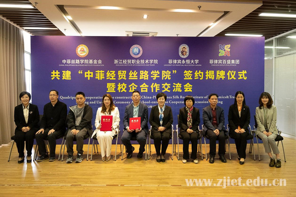 中菲经贸丝路学院是学校携手菲律宾浙江总商会、菲律宾百盛集团以及菲律宾永恒大学,校企校三方共建的境外办学机构,2022年4月正式揭牌。“丝路学院”聚焦菲律宾跨境电商、农产品流通等领域的本土化人才培养,通过搭建国内外教学实践基地,开展中菲数字技术与运营高素质技术技能人才培养,深入探索“招生-培养-实习-就业”四位一体的留访学生定向培养机制,持续推进中菲青年人文交流。截止目前,丝路学院已面向菲律宾永恒大学近百位师生开展了“中文+新媒体运营”“中文+传统文化”等培训项目,并为多个“走出去”中资企业提供技术服务和人才支持。