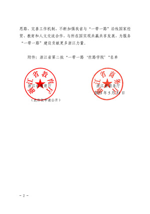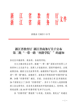 2022年6月,学校牵头设立的中乌经贸丝路学院、康博丝路学院、泰中罗勇丝路学院成功入选浙江省首批29所“一带一路‘丝路学院’”。