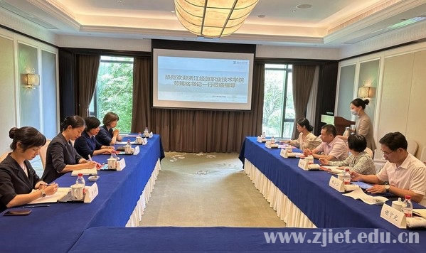 第二站,劳赐铭一行来到西子宾馆,在省特勤局接待管理部人力资源处负责人倪晓飞的陪同下,实地走访了亚运实习生的培训环境,与亚运实习生们进行了深入交谈,详细了解了培训内容及岗位要求,对同学们的优异表现给予了高度的评价和肯定,鼓励同学们认真负责,展现经贸学子的风采,用出色的服务圆满完成杭州亚运会的任务,为亚运实习生们送上了精美礼物。双方围绕亚运实习生培训、生活和工作情况、校企合作、人才共育等内容进行了深入的交流与探讨。