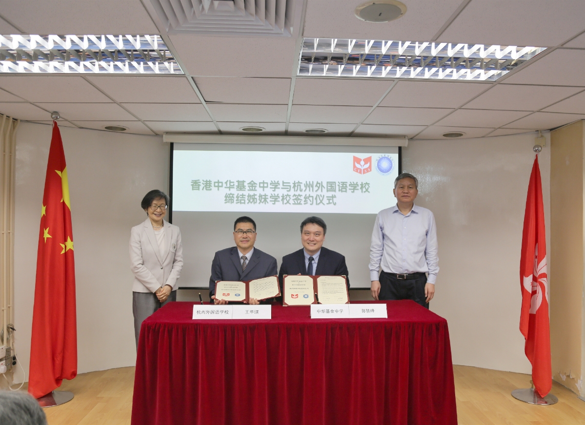 25日上午,代表团参访香港汉基国际学校,考察艺术工作坊、机器人实验室、图书馆等,深入了解汉基国际学校办学情况,沟通交流杭州汉基外籍人员子女学校下一步工作。下午,代表团一行来到中华基金中学,参观学校奖品房、中草药陈列室、地理及气候变化资源中心、机器人室等,详细了解学校办学历史、特色及成果。杭州外国语学校与香港中华基金中学举行签约仪式,正式缔结为姊妹学校。毛宏芳在签约仪式上表示,希望两校以签约为契机,充分发挥优势特长,设计多形式合作载体,开展师生交流、冬夏令营、学术研讨、合作文体活动等务实交流,常来常往、互相学习、增进友谊,不断提升办学水平。