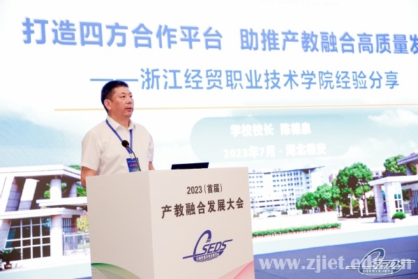 陈德泉代表学校参加融合实践创新中心共建启动仪式,并在「数字经济与产教融合平行论坛」作题为《打造四方合作平台 助推产教融合高质量发展》的主题报告,阐述学校产教融合工作的典型经验与做法。
