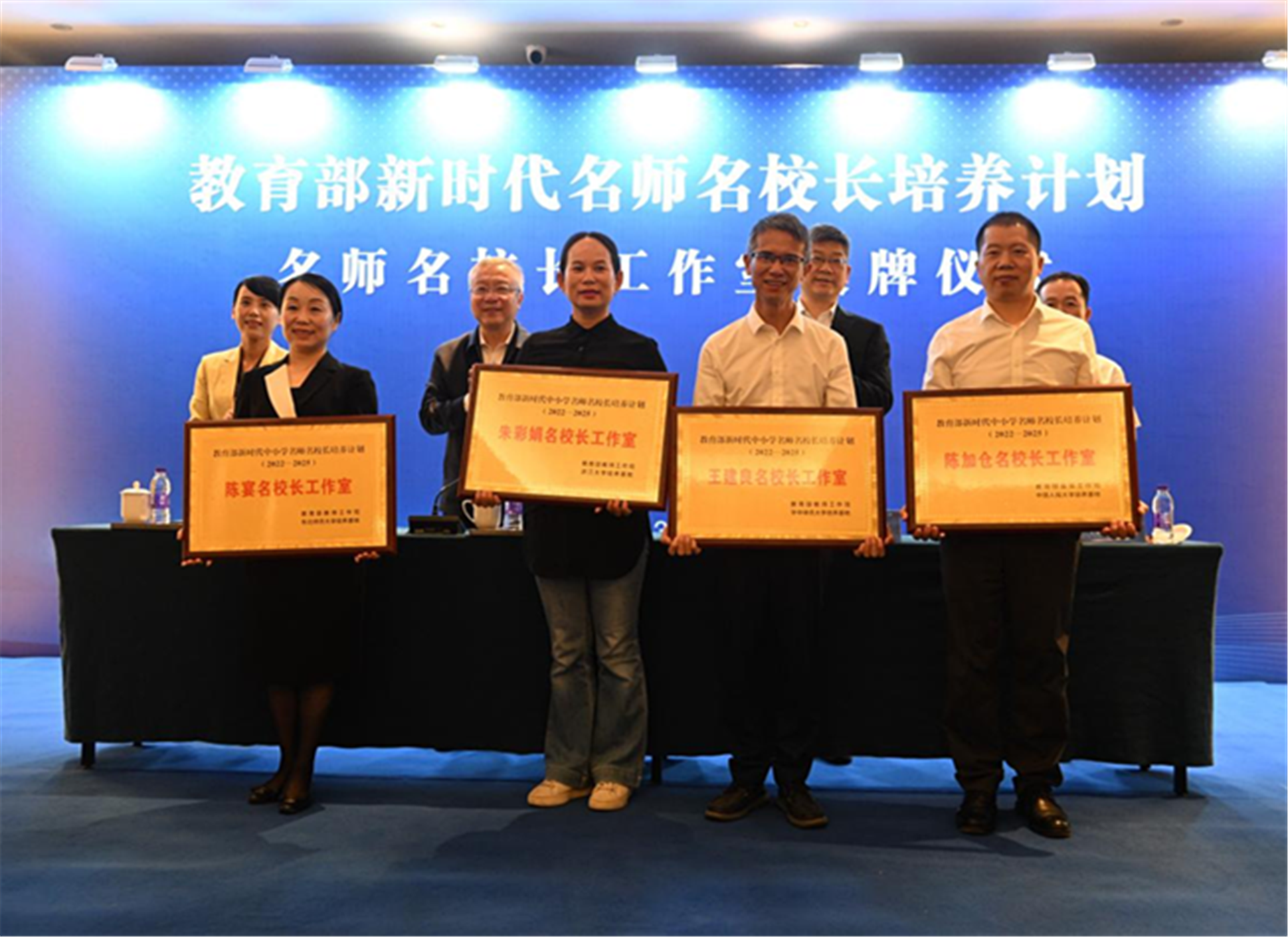 10月31日,由教育部教师工作司、浙江省教育厅主办的“教育部新时代名师名校长工作室集中授牌仪式”在温州市举行。教育部教师工作司司长任友群,浙江省教育厅副厅长汤筱疏出席活动并讲话。教育部教师工作司副司长黄小华参加授牌仪式,浙江省教育厅总督学陈仁坚主持授牌仪式。