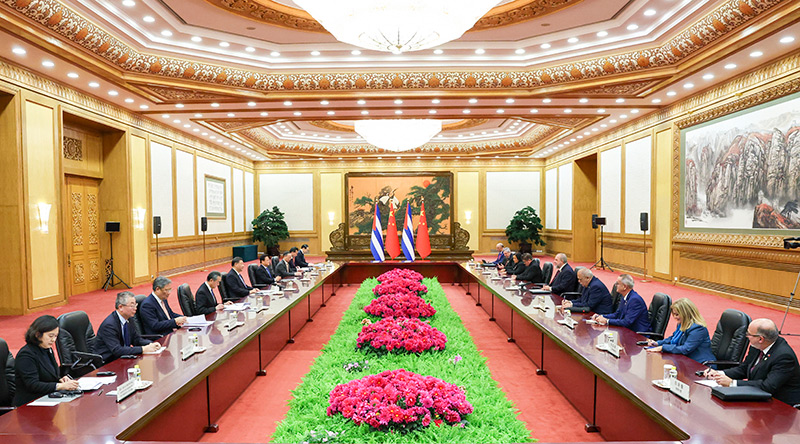 习近平指出,中国和古巴是好朋友、好同志、好兄弟。在中古历届领导人引领和培育下,两国在建设本国特色社会主义道路上携手并进,在涉及彼此核心利益问题上相互支持,在国际和地区问题上密切配合,结下了牢不可破的信义之交。中方从战略高度和全局角度看待和发展两党两国特殊友好关系,坚持中古长期友好方针,愿同古方持续深化政治互信和战略协作,开展治党治国理论研讨和经验交流。中方将继续坚定支持古巴人民反对外来干涉和封锁,维护国家主权和民族尊严。