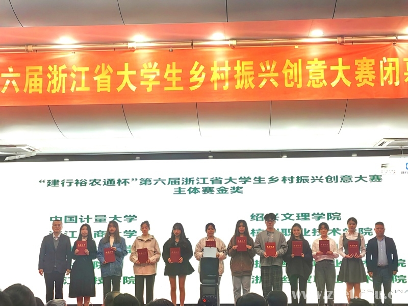 11月10-14日,“建行裕农通杯”第六届浙江省大学生乡村振兴创意大赛主体赛决赛在中国计量大学举行。学校荣获金奖1项、银奖、铜奖各1项,并首次获得“优秀组织奖”。