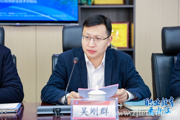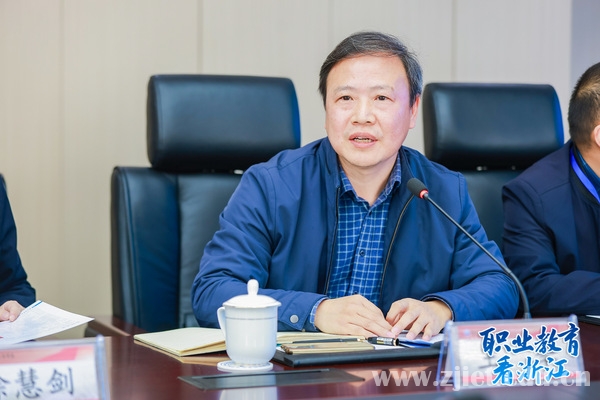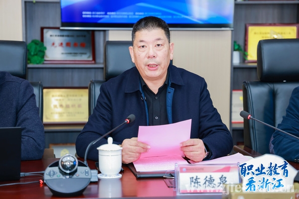 陈德泉对到访的媒体记者表示热烈欢迎,并从学校的历史沿革、党建引领、产教融合、数字改革、国际合作、三全育人等方面为切入点,详细介绍了学校基本情况。他表示,浙江经贸是全国供销合作社系统唯一入选“双高计划”的高职院校,一直以坚持以习近平新时代中国特色社会主义思想为指导,全面贯彻党的教育方针,扎实推进国家、省“双高计划”建设,坚持“立足区域,依托行业,服务三农”的办学思路,深化产教融合,服务地方经济发展,助力共同富裕,贡献职教力量,发出经贸声音。希望各界媒体多多走进学校参观报道,为学校的发展建言献策。
