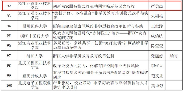 近日,教育部公示了《2023年学习型社会建设(高等继续教育领域)重点任务建设名单》,我校申报的《创新为农服务模式打造共同富裕示范区先行校》成功入选非学历教育改革创新重点任务名单。