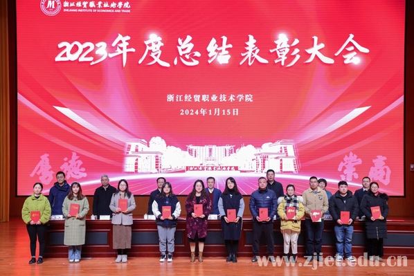 1月15号上午,学校在新落成的产教融合大楼报告厅召开2023年度总结表彰大会,总结过去、表彰先进,激励斗志、鼓舞干劲,动员全校上下对标先进、比学赶超、奋勇争先,为助力浙江“两个先行”、推进中国式现代化贡献“经贸力量”。全体教职员工参加大会,党委副书记许宝峰主持会议。