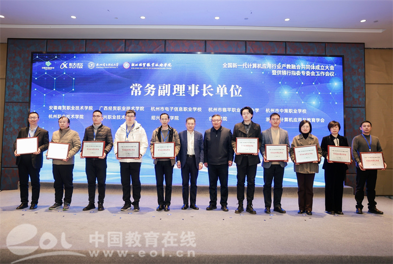 大会为安徽商贸职业技术学院、广西经贸职业技术学院等10家首批加入共同体的常务副理事长单位授牌,为贵州经贸职业技术学院、杭州城市大脑技术与服务有限公司等20家副理事长单位授牌。
