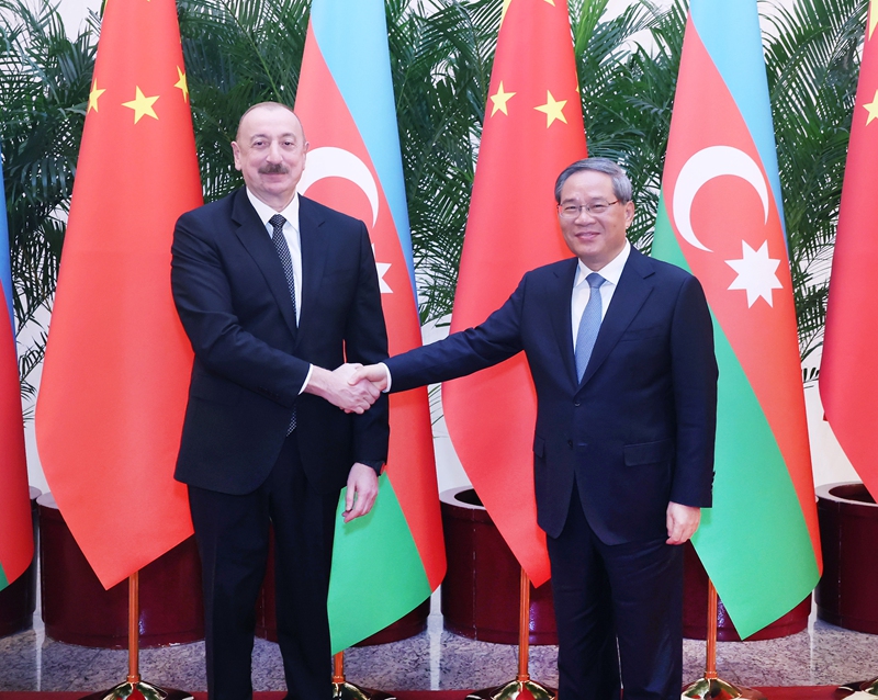李强表示,中国和阿塞拜疆是真诚互信的好朋友、平等互利的好伙伴。两国建交33年来,始终相互尊重、平等相待,沉淀下深厚的友谊和信任,双方务实合作不断向纵深推进,实实在在惠及了两国人民。今天上午,习近平主席同总统先生举行会谈,共同宣布两国建立全面战略伙伴关系,为中阿关系发展掀开新篇章。中方愿同阿方一道,进一步弘扬传统友谊,增进战略互信,坚定支持彼此维护核心利益,将两国互利合作推向更大规模、更宽领域、更高层次,为双方共同发展繁荣增添更多动力。