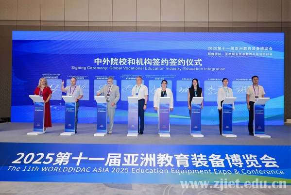 第十一届亚洲教育装备博览会(WORLDDIDAC ASIA 2025)于2025年9月17-19日在杭州大会展中心隆重举行。作为博览会的重要组成部分,由全国高等职业学校校长联席会议、宁波市职业技术教育学会主办、学校参与协办的职教板块主论坛--“亚洲职业技术教育与培训研讨会”于2025年9月17日同期举办,来自15个国家的政府机构、院校企业代表300余人参加活动。学校副校长林锋受邀出席职教板块主论坛并参加多场交流活动。