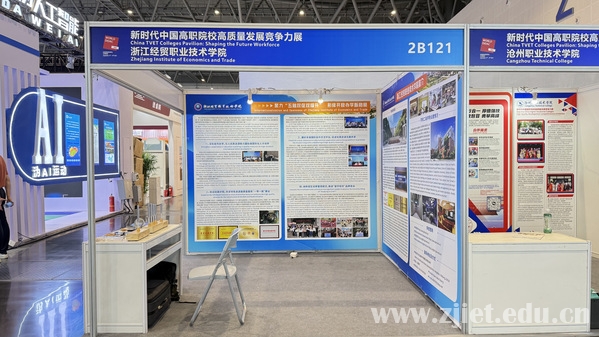 研讨会设立“职教出海产教融合特色展区”,我校在高职院校高质量发展竞争力展区设立展位,全面展示了学校在人才培养、国际合作等方面的办学特色和亮点成绩。